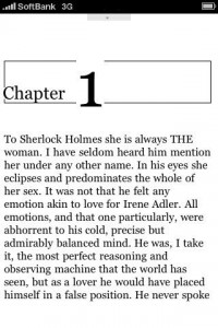 まだちょっと触ってみただけだけれど、iPhone で、用意されているライブラリから「シャーロックホームズの冒険」を見てみるとこんな感じ。