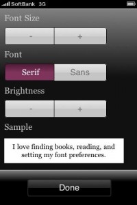セッティングはフォント・サイズと Serif / Sans Serif の切換え、背景の明るさのみ。